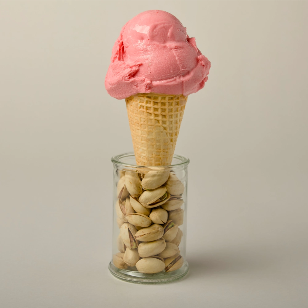 Helado de leche sin lactosa que combina una crema base muy suave con auténticas frutillas (fresas) en conserva casera. Este helado artesanal de frutilla evoca los sabores tradicionales de las heladerías de los años 80s, cuando los helados de fruta llevaban trozos reales de fruta macerada. Para elaborarlo, preparamos un coulis espeso con frutillas maduras y azúcar, similar a una mermelada ligera, dejando algunas piezas enteras; esta conserva se arremolina en la base de helado de vainilla suave, creando vetas rosadas y blancas a lo largo de la mezcla. El helado se congela lentamente para fijar esos remolinos sin mezclarlos por completo, de modo que al servir se aprecian tanto la crema como la fruta. El sabor es entrañable: la dulzura láctea se entrelaza con la acidez natural de la frutilla, ofreciendo un perfil gustativo equilibrado y fragante. Los trocitos de frutilla aportan explosiones de sabor frutal y una textura agradable en contraste con la crema. Cada cucharada trae recuerdos de veranos pasados y reuniones familiares, con esa calidad casera que solo un proceso artesanal y una fruta verdadera pueden brindar.
